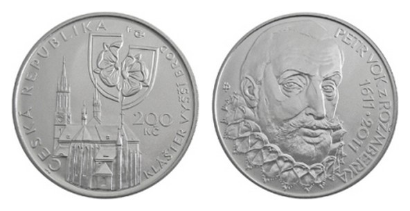 K 400. výročiu úmrtia významného českého šľachtica Petra Voka z Rožmberka bola v októbri 2011 vyhláškou Českej národnej banky č. 305/2011 Sb. vydaná pamätná strieborná minca v hodnote 200 Kč. Dvestokorunák bol razený v bežnej kvalite a v špičkovej kvalite určenej pre zberateľské účely s lešteným poľom mince a matným reliéfom.